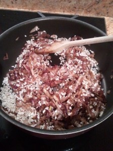 - quando la cipolla si è ammorbidita ma non rosolata del tutto, unire il radicchio